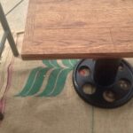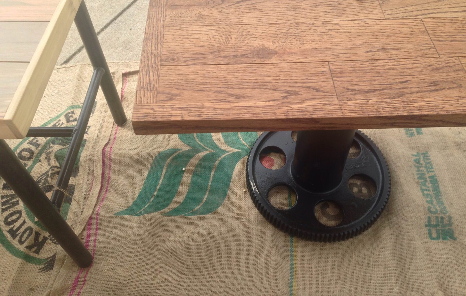 “The table tops are poplar, from poplar pallets,” Tilley says. “I love the way poplar has so many different textures and grains. Together, they make a beautiful mosaic.” The artist now has friends passing along gears and reclaimed wood that they come across hoping the artist can connect these to a functional work of art.