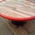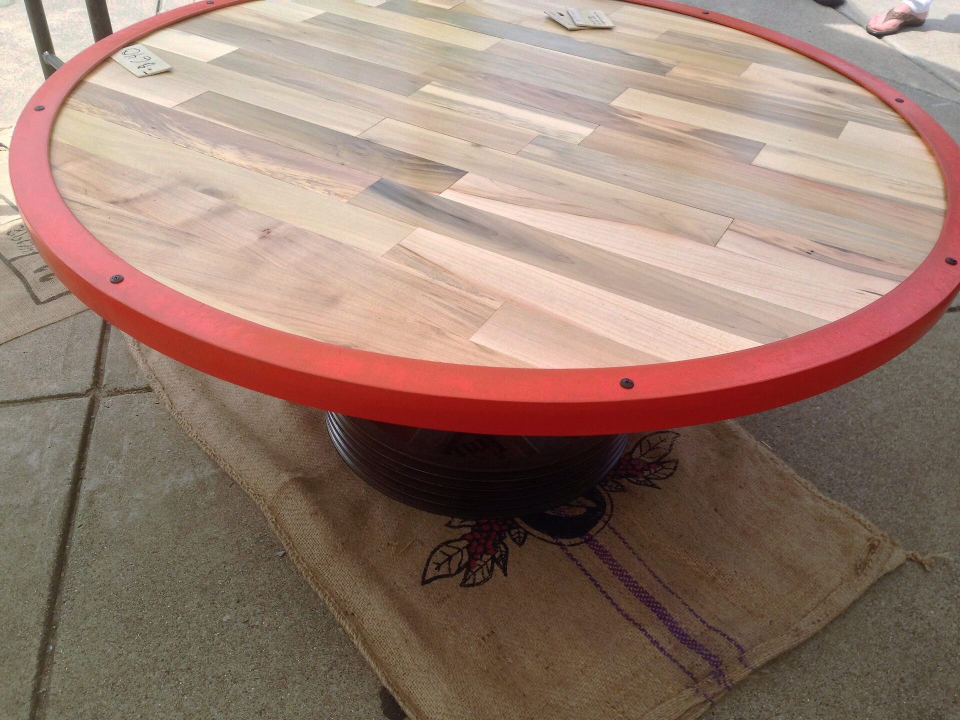 When a few of the old circular rims were set aside as scrap for the landfill, Tilley took one home and began thinking about different materials he might use to build a table.” Over time, there were other designs and the satisfaction of building the industrial-inspired tables continued.