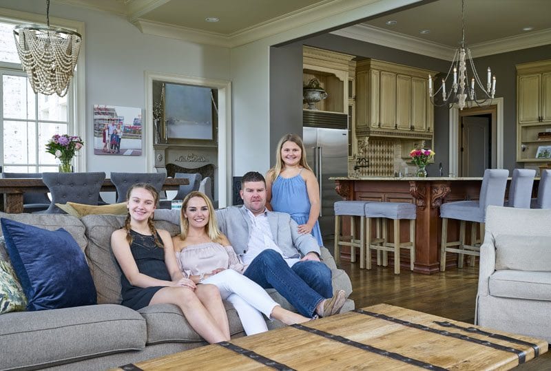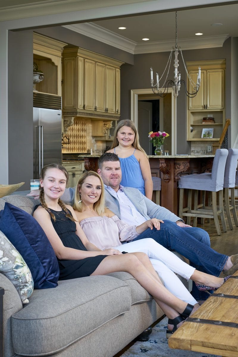 “I think that the way that it’s laid out, we obviously spend most of our time up here in the family room,” Jon says. “When the weather is nice, the girls can sit here and watch TV, and Jaimie and I can slip out onto this little porch and have a glass of wine, smoke a cigar.”