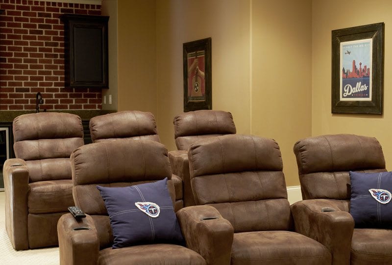 “If we want to do family night, we can go down to the theater and escape,” Jon says. “You’re at home, but it feels like you’re at the theater. If you want the outdoor space, you can kind of slide out into that outdoor living area. It kind of feels like a resort. There’s a lot of different vibes with different areas of the house.”