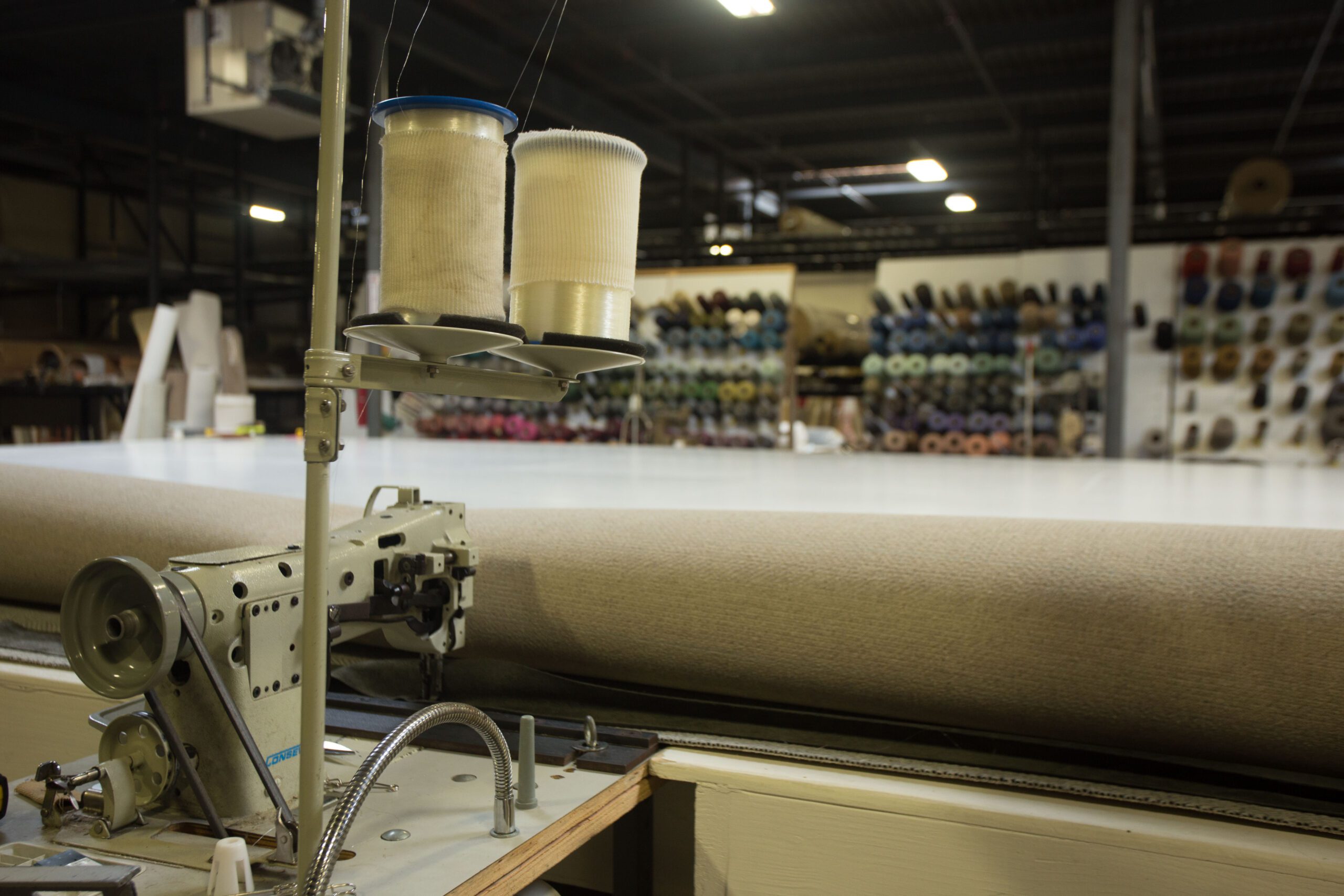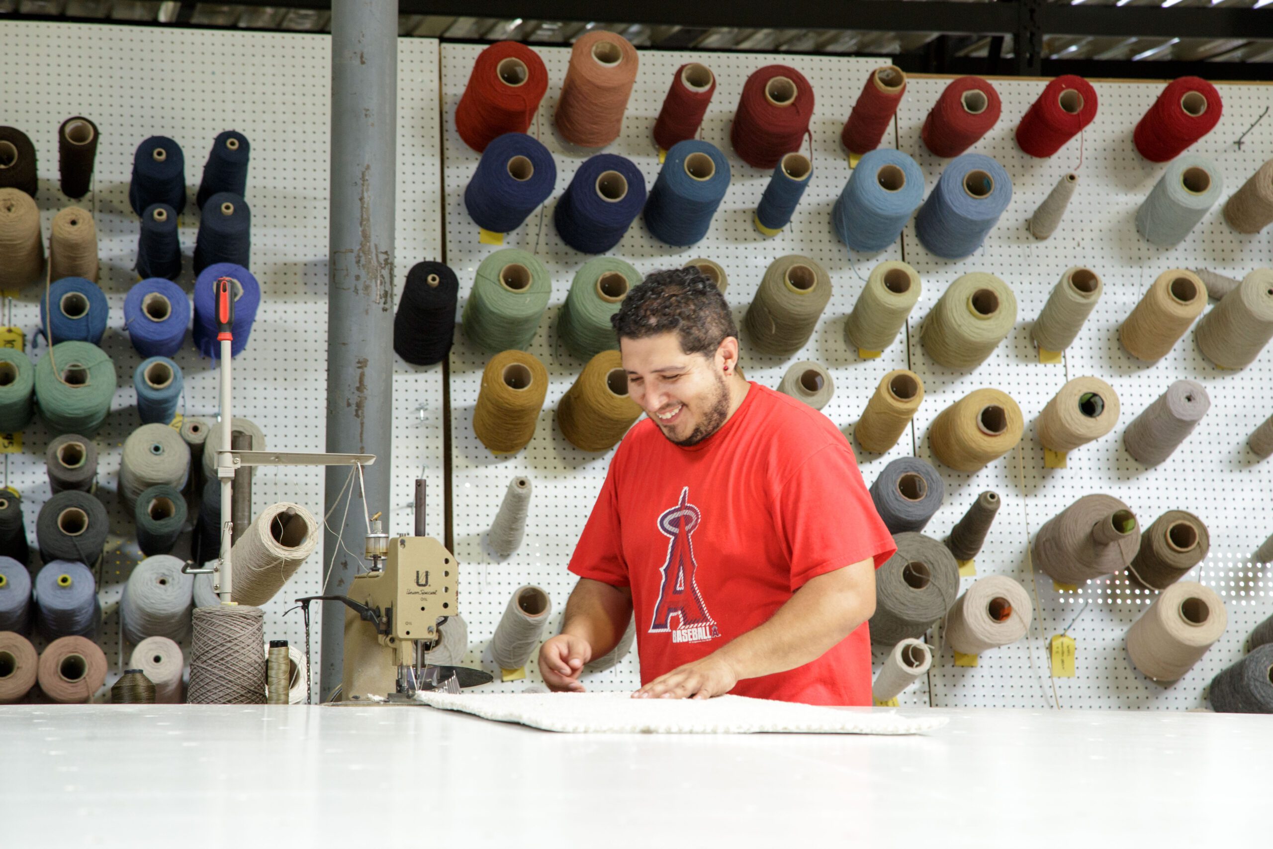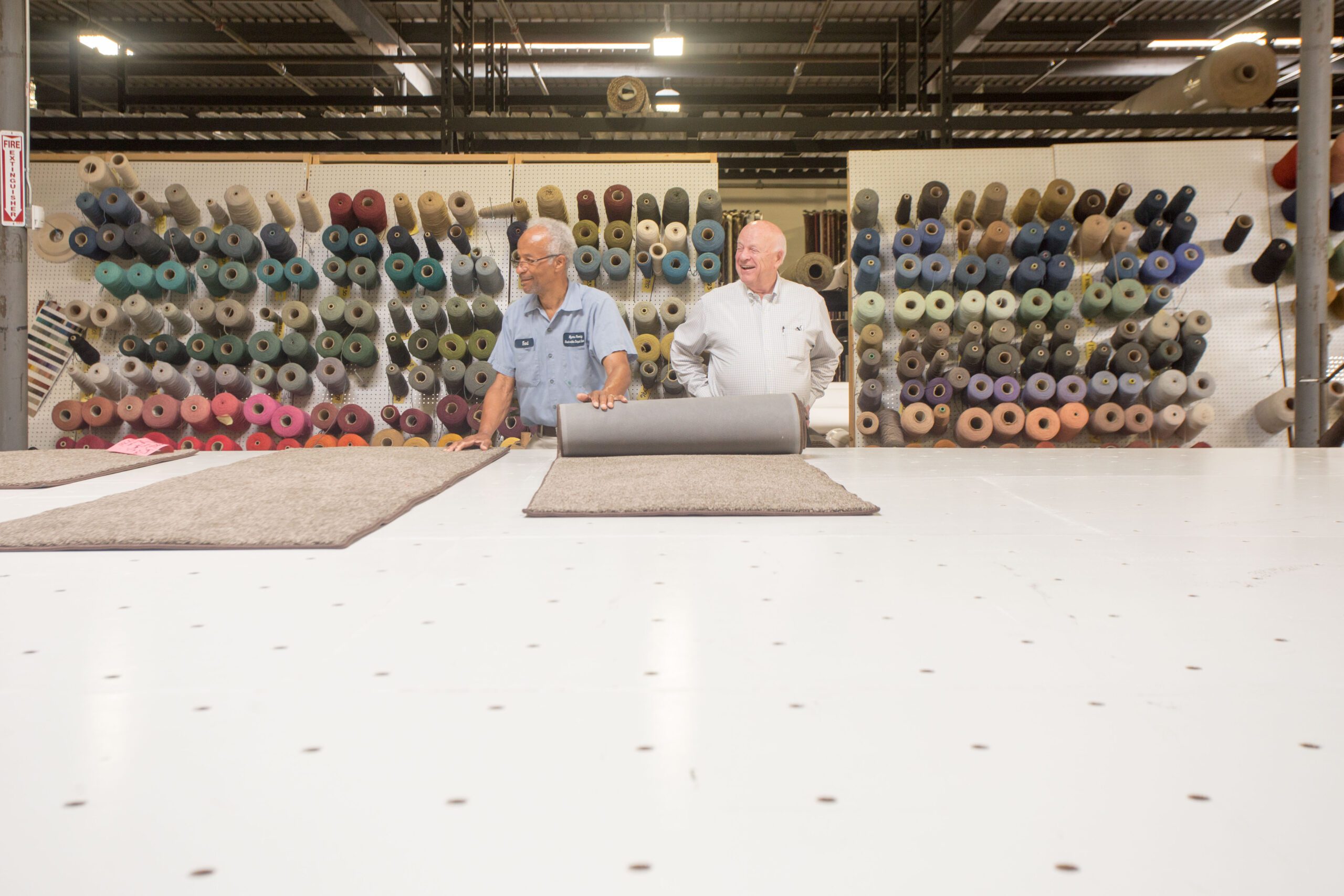 In 1957 their father, Gene, founded the company in Dalton, Georgia — the city’s first carpet retail wholesale business. They traveled to carpet mills to buy their poundage and brought it back to Myers to make throw rugs and runners. Rick was just 5 years old, and he tells of how his father had worked for J M Ferry, a company that supplied cutting machines to the carpet industry. He then learned to work a binding machine and the serging machine himself.