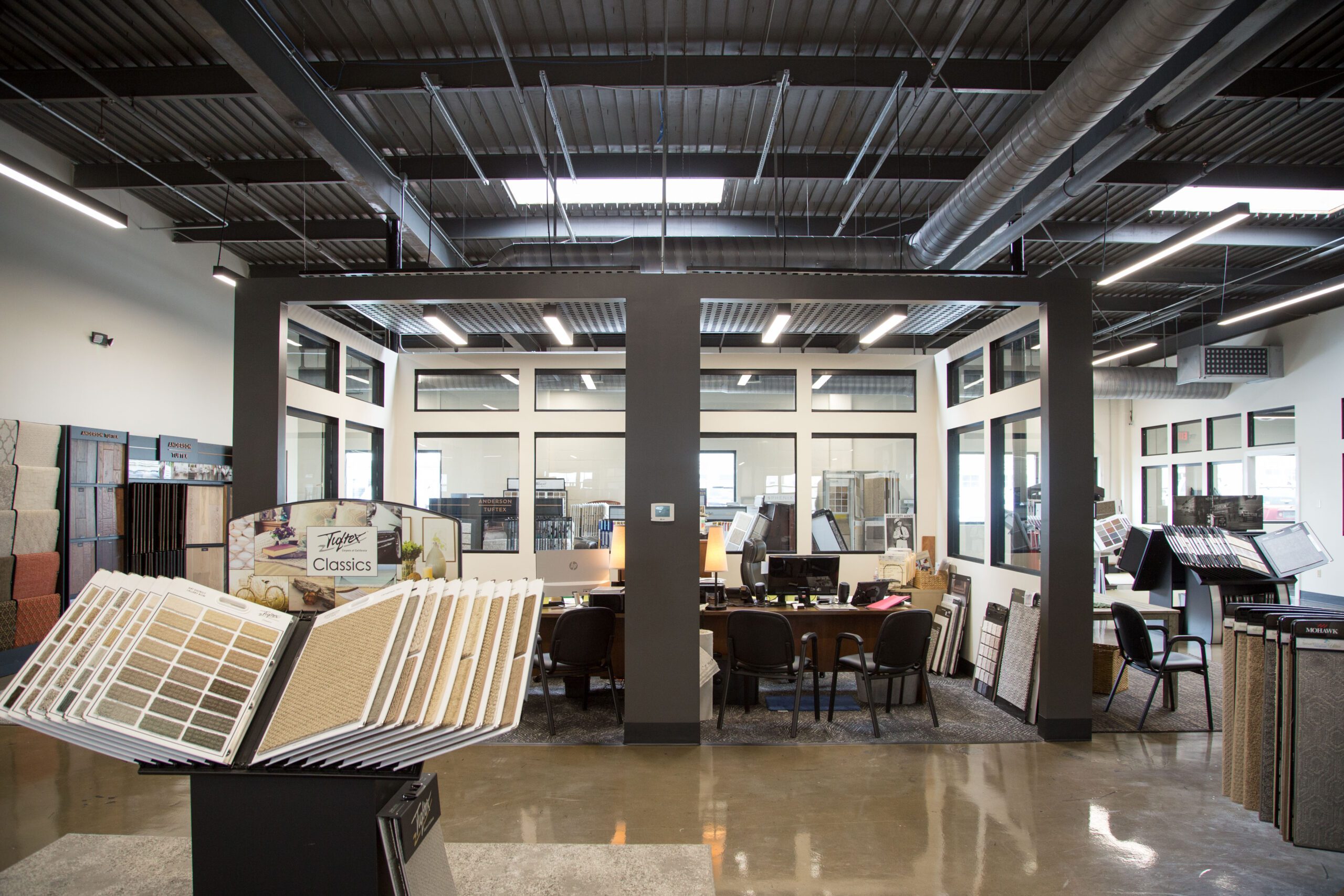Ray put his design skills to work on the concept of the new showroom, transforming the 1950s building with a new roof, new HVAC and a sleek design center of all glass and steel — designed so customers can see every sample and the work being done to it.