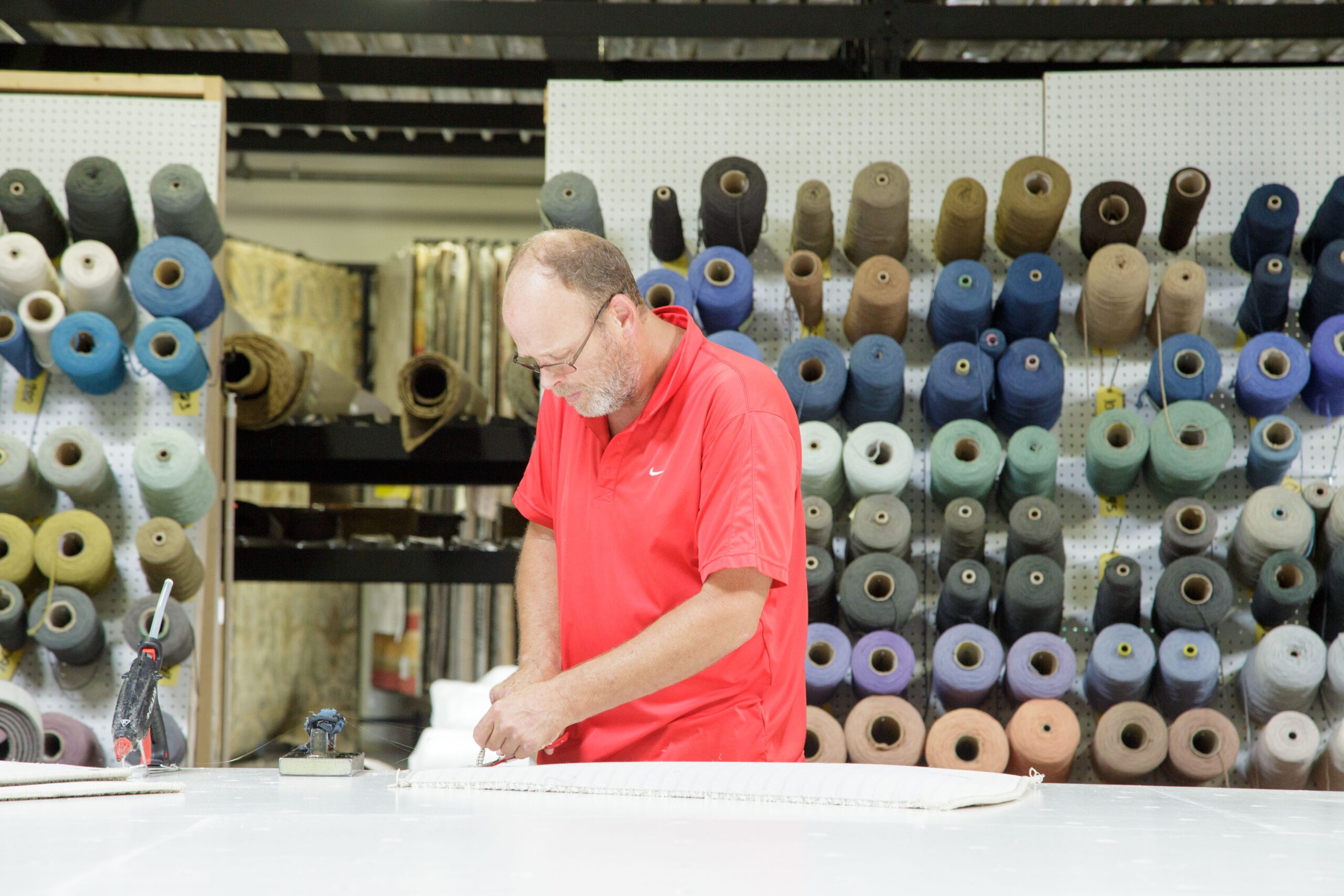 “The work rooms are very important to us in all three stores,” Rick says. “If somebody sees us working on a $100 a yard carpet out here, they have more confidence in us that we can do the right thing.”