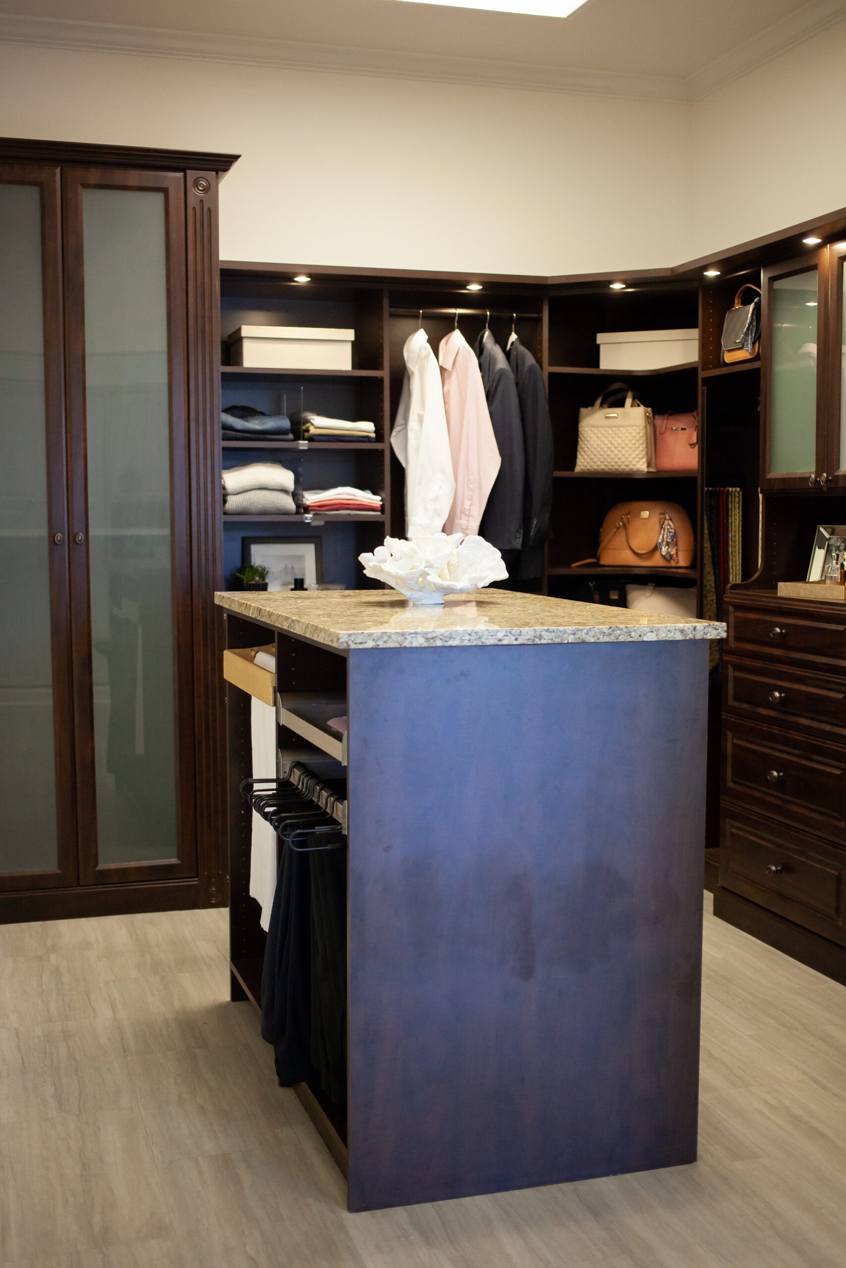 Mills and her design team are dedicated to creating closet spaces that function just the way her clients need them to, whether that means reworking existing space or knocking down walls. In the showroom, clients can view the products and all the finishes and styles.
