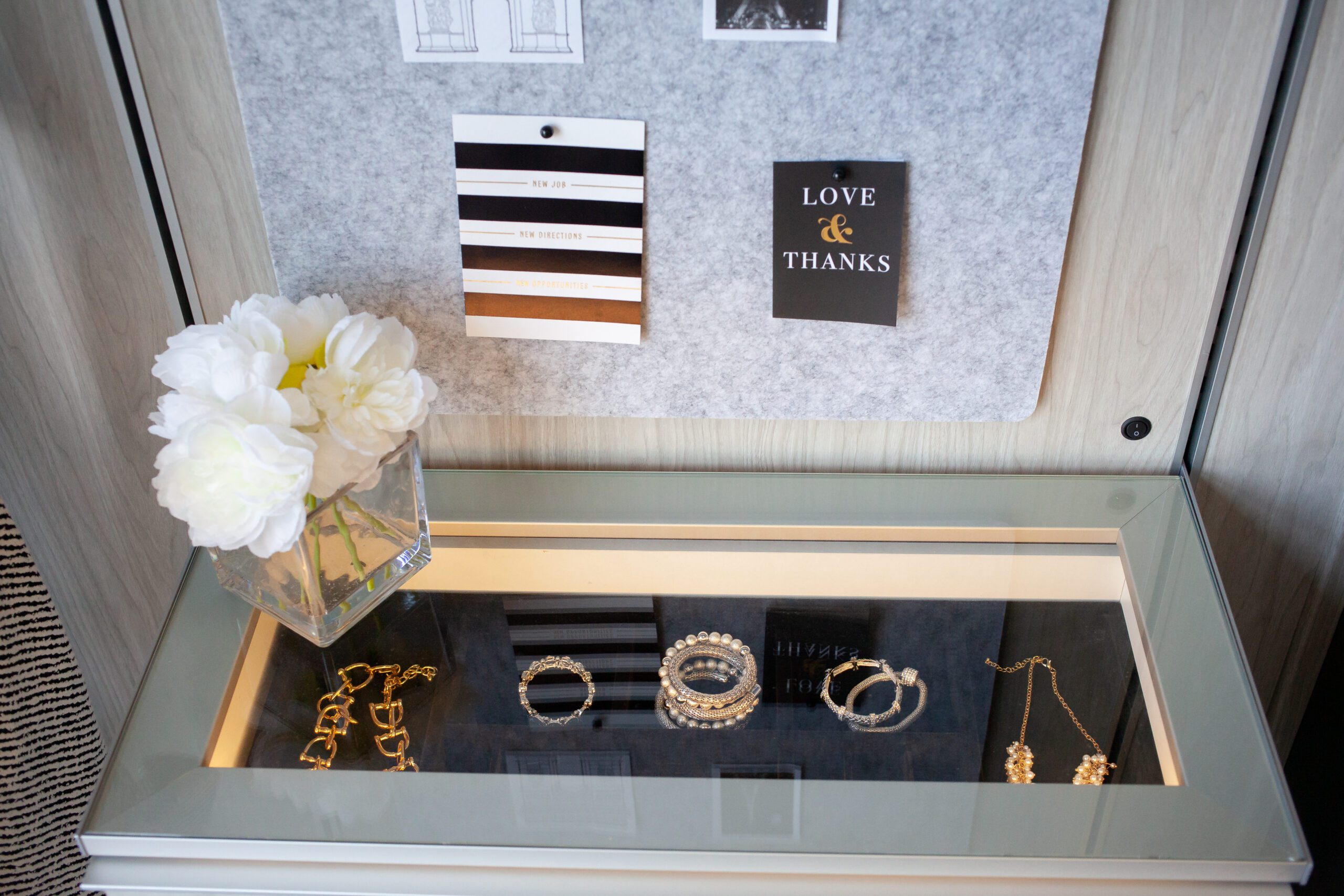 “We’ve got mirrors, a place for all your jewelry — a closet can be a place you can go camp out for a while if you want, for a little getaway time,” she says.