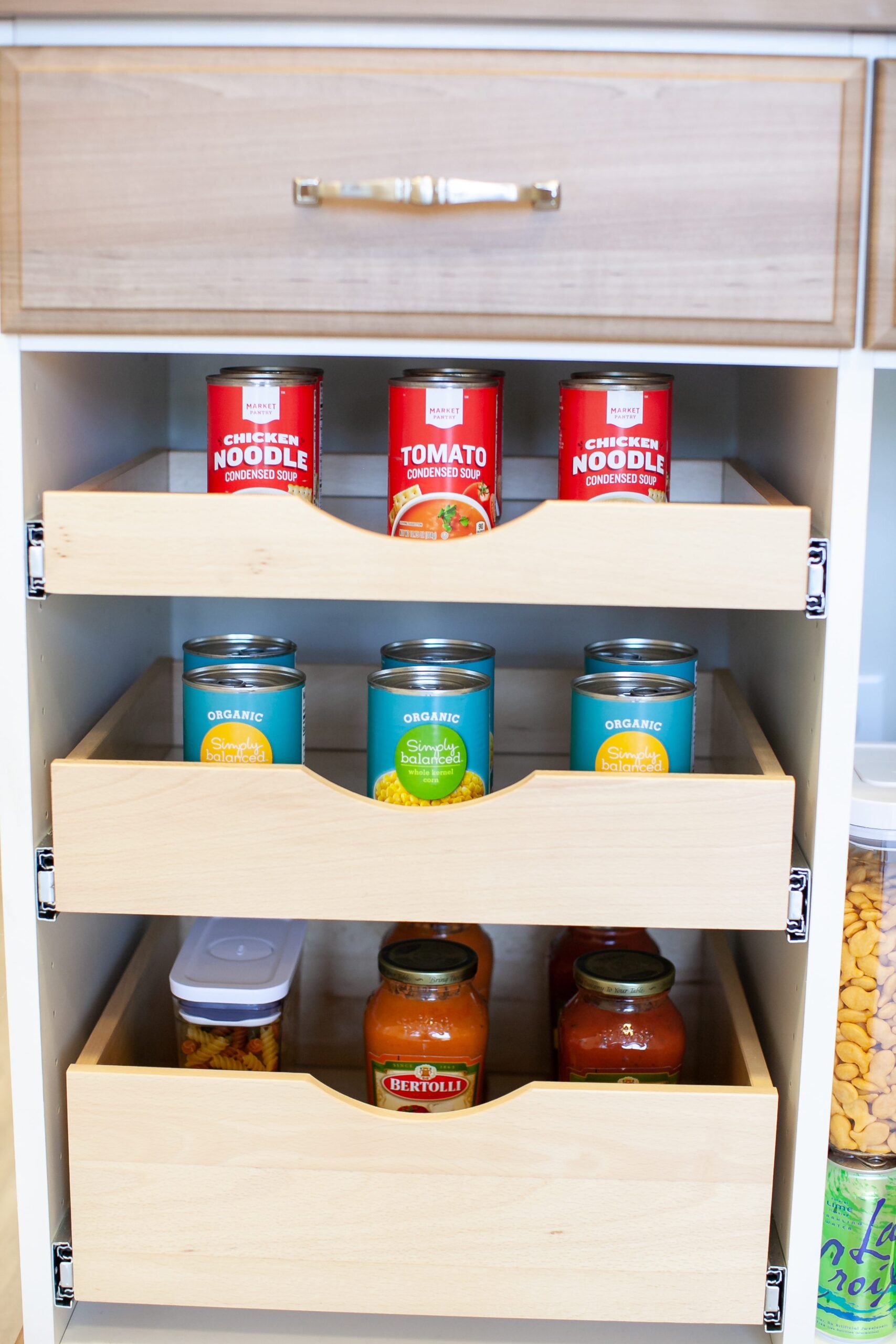 “We do a lot of lighting now that LED lights have become very popular,” she says. “We have a lot of accessories and finishes, as far as hardware goes. Matte gold has become really popular.”