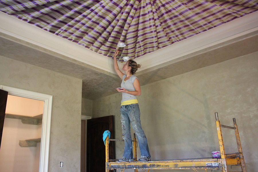 Artist Ali Kay often travels with scaffolding to reach her canvas, bringing her degree in fine art to create custom wall and ceiling murals for her clients. The artist gives each room its ‘atmosphere.’