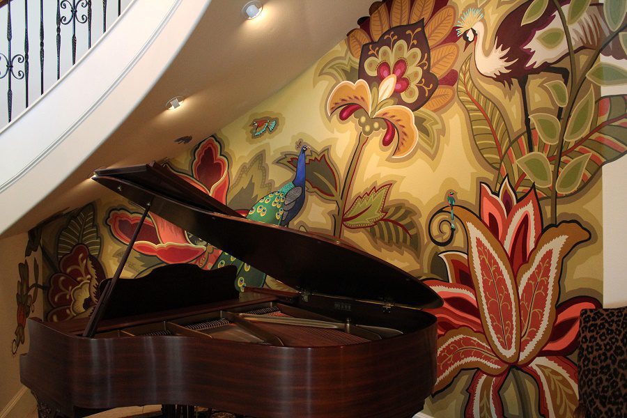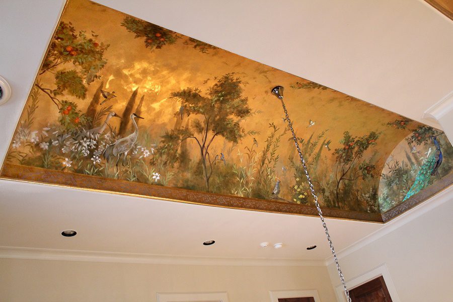 In addition to ceilings, Ali Kay has completed many award winning wall murals such as this background for a grand piano in the home of Gary and Jan Smith. This project received honorable mention by the Texas Gulf Coast ASID for Best Wall Treatment.
