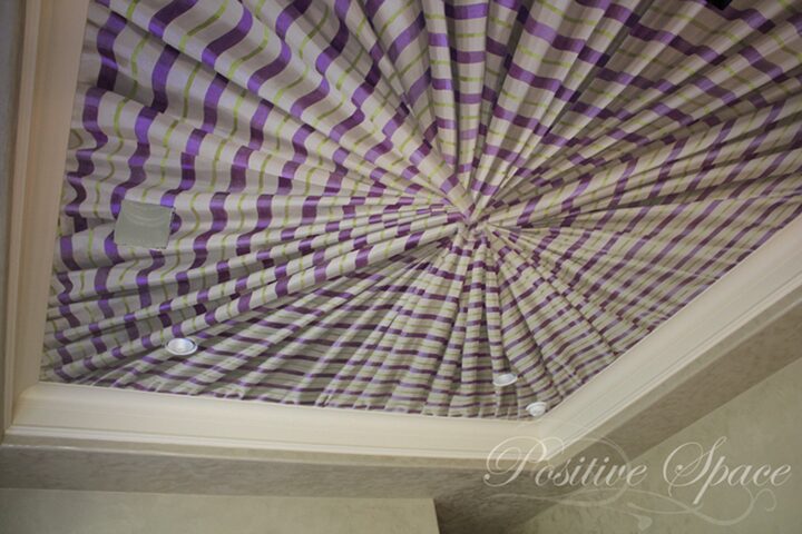 Though this ceiling is trompe l’oeil and not actually fabric, it certainly evokes the details of folds and shadows. This effect is a result of a carefully made model that Ali Kay created from actual fabric and photographed to gain this level of authenticity or realism. The project received Best Use of Textiles by the Texas Gulf Coast ASID. The project was completed as a collaboration with Anything But Plain decorative painting and interior designer Beth Lindsey.