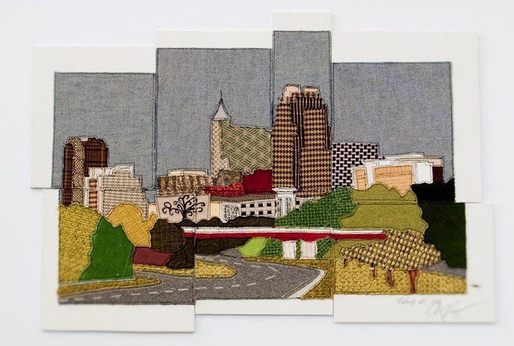 Cary Caitlin continues to call Raleigh home and has gotten to know the city well over the past two decades. While remaining active in the North Carolina music scene, she has expanded her creative efforts as a visual artist. She’s recording the city’s landmarks and fragile built environment with embroidery and upholstery fabric swatches. We had to share her designs.
