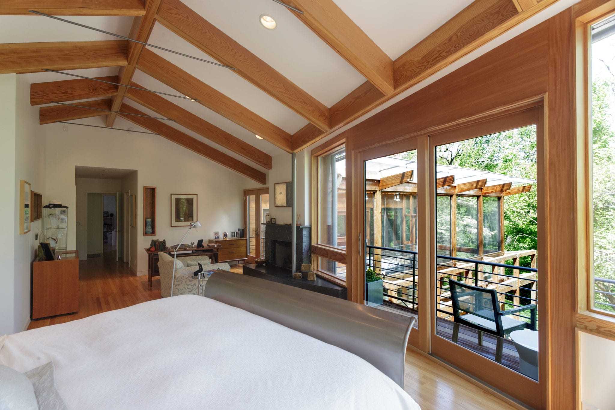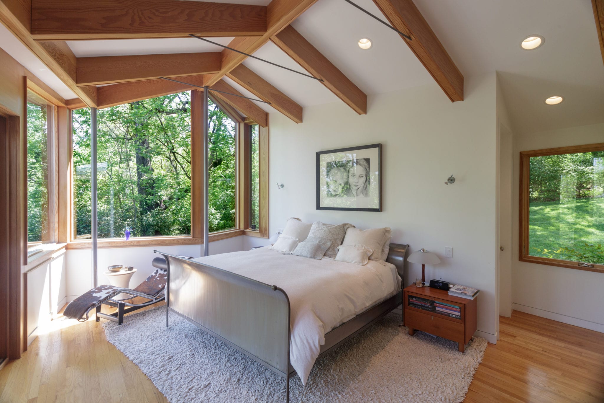 In the living room the windows were already large, but they took out the bottom quarter of the trusses to get more light in and to increase the feeling of space.