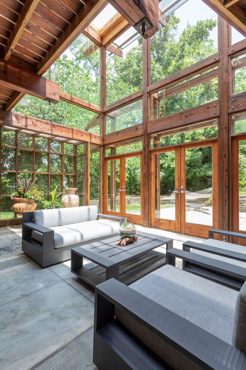 Behind the property is a wildlife preserve deeded to the Friends of Radnor Lake by John Cheek Jr., so the result of the lot is not unlike the feeling of being in a treehouse.