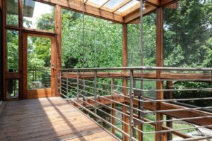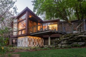 Behind the property is a wildlife preserve deeded to the Friends of Radnor Lake by John Cheek Jr., so the result of the lot is not unlike the feeling of being in a treehouse.