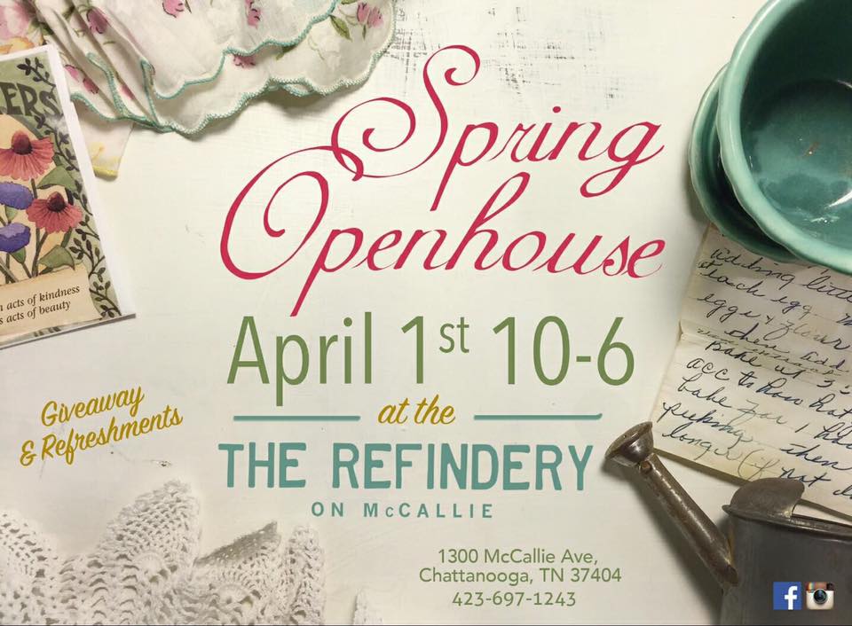 Visit The Refindery on McCallie to get your spring fever on. More than 50 merchants offer great finds for home and garden. The Spring Open house celebration will be held Saturday, April 1.