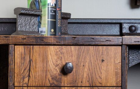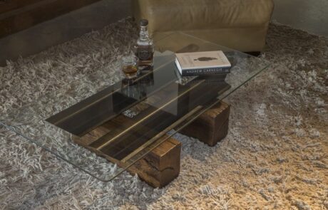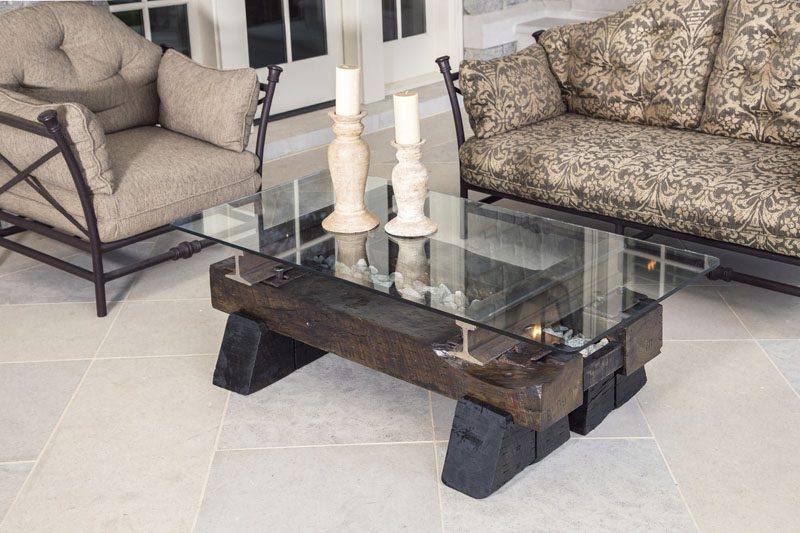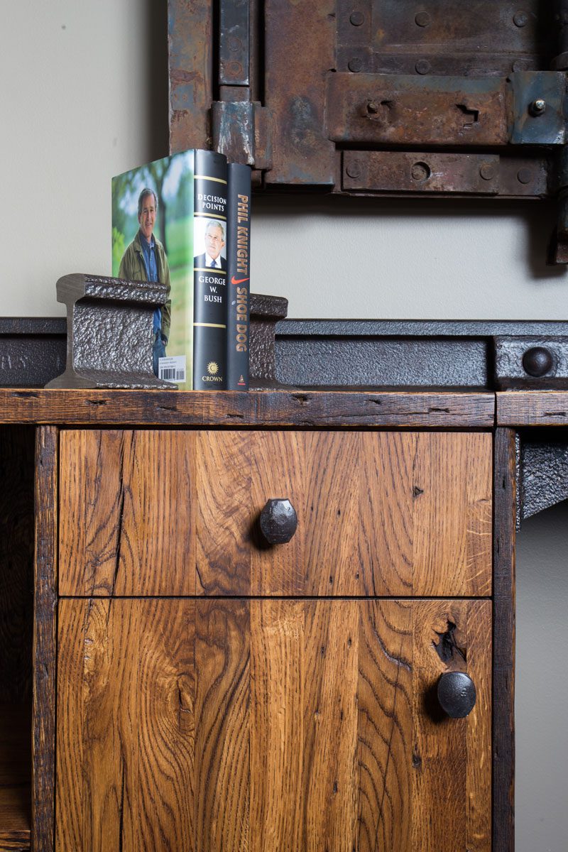 So six years ago he decided to try something unexpected to even things out. Using his industrial design background, he began conceptualizing designs using the scrap wood and steel that no longer made the grade for rail use. He began making furniture.