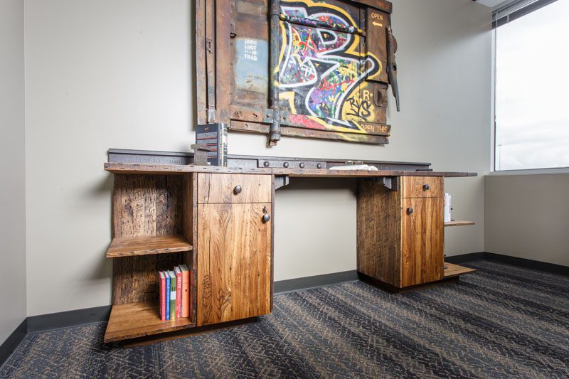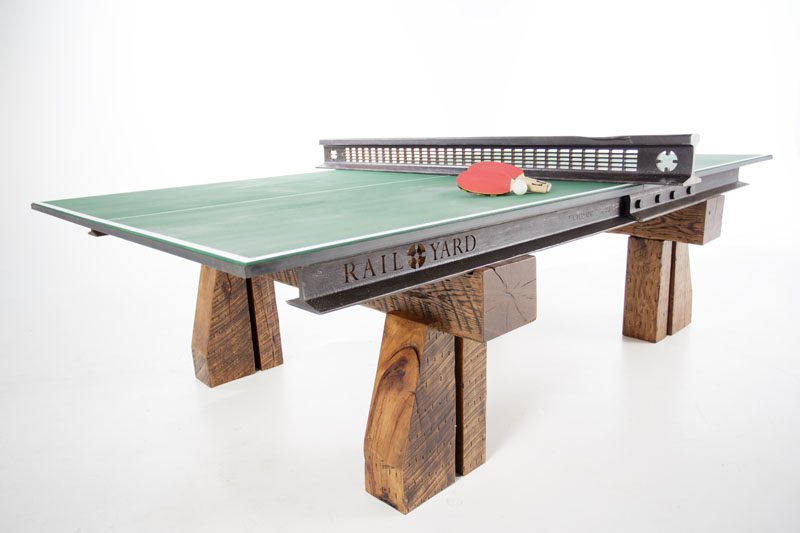 Rail Yard Studios’ express line incorporates reclaimed railroad steel from 1896 to 1915 and hardwood hickory, elm, beech, maple and cherry timbers for smaller spaces. They are currently working on a line of pool tables with Olhausen Billiards in Portland, Tennessee.