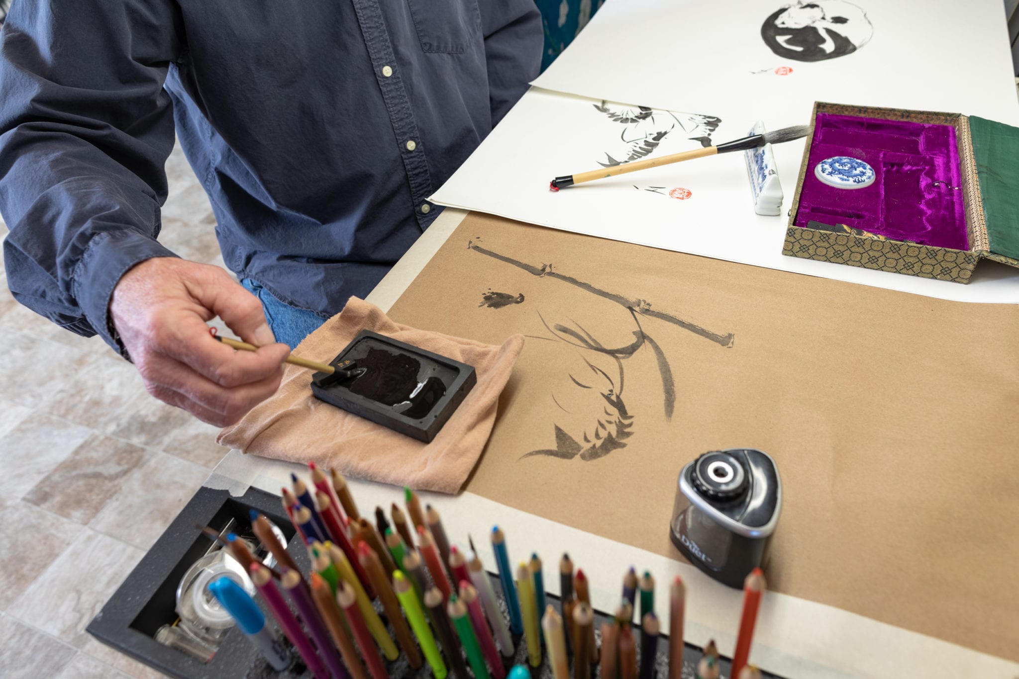 Folding screens originated in China around the fourth century BC , maybe earlier, and often depicted idyllic scenes beautifully wrought by craftspeople and artists. EClan Design master artist Will Rhodarmer is honoring that history with the one-of-a-kind folding screens he creates for his company — beautiful, functional and created by hand.