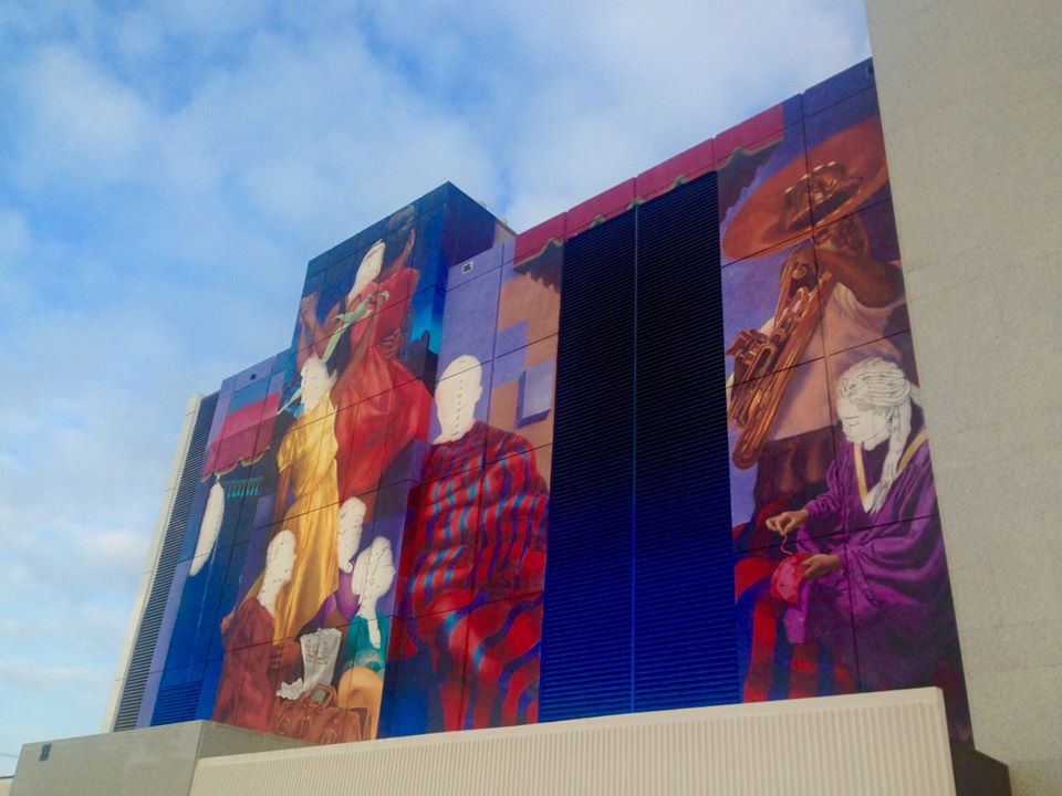 As Saligman and others began listening to residents— and residents began sharing their stories— it was recognized that the project’s purpose would be to reclaim not merely remember the past of this historic black street, once called Big Nine. The result is the transformation of a big obtuse city-block-of-a-building with a painterly mural— a massive 42,179 square-foot mural— deemed the largest in the nation.