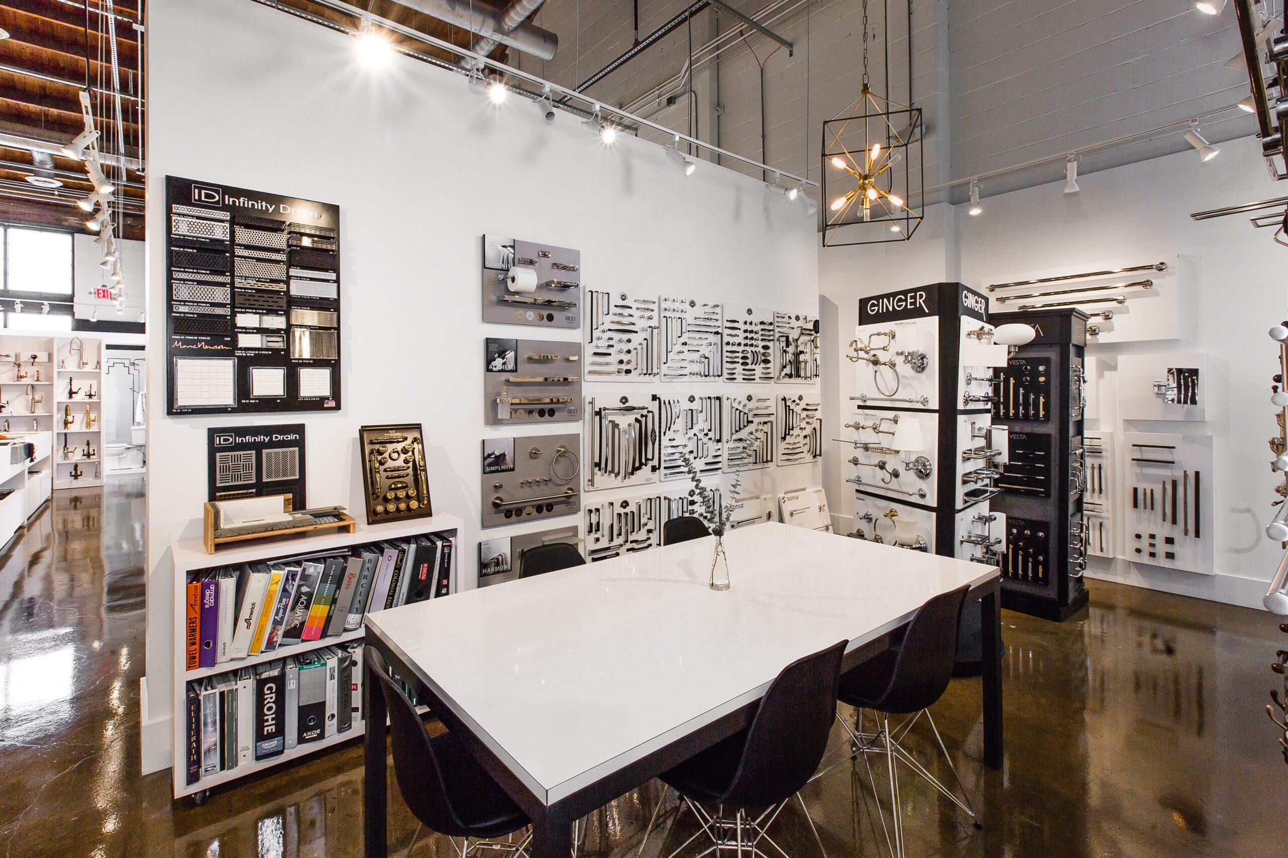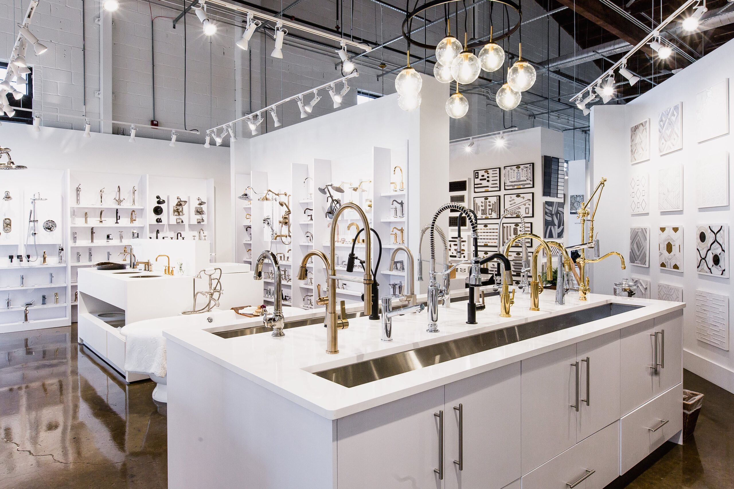 Plus, guests to the Design District showroom can test shower heads in their working shower display and faucets in the working kitchen faucet area to see how products will function.