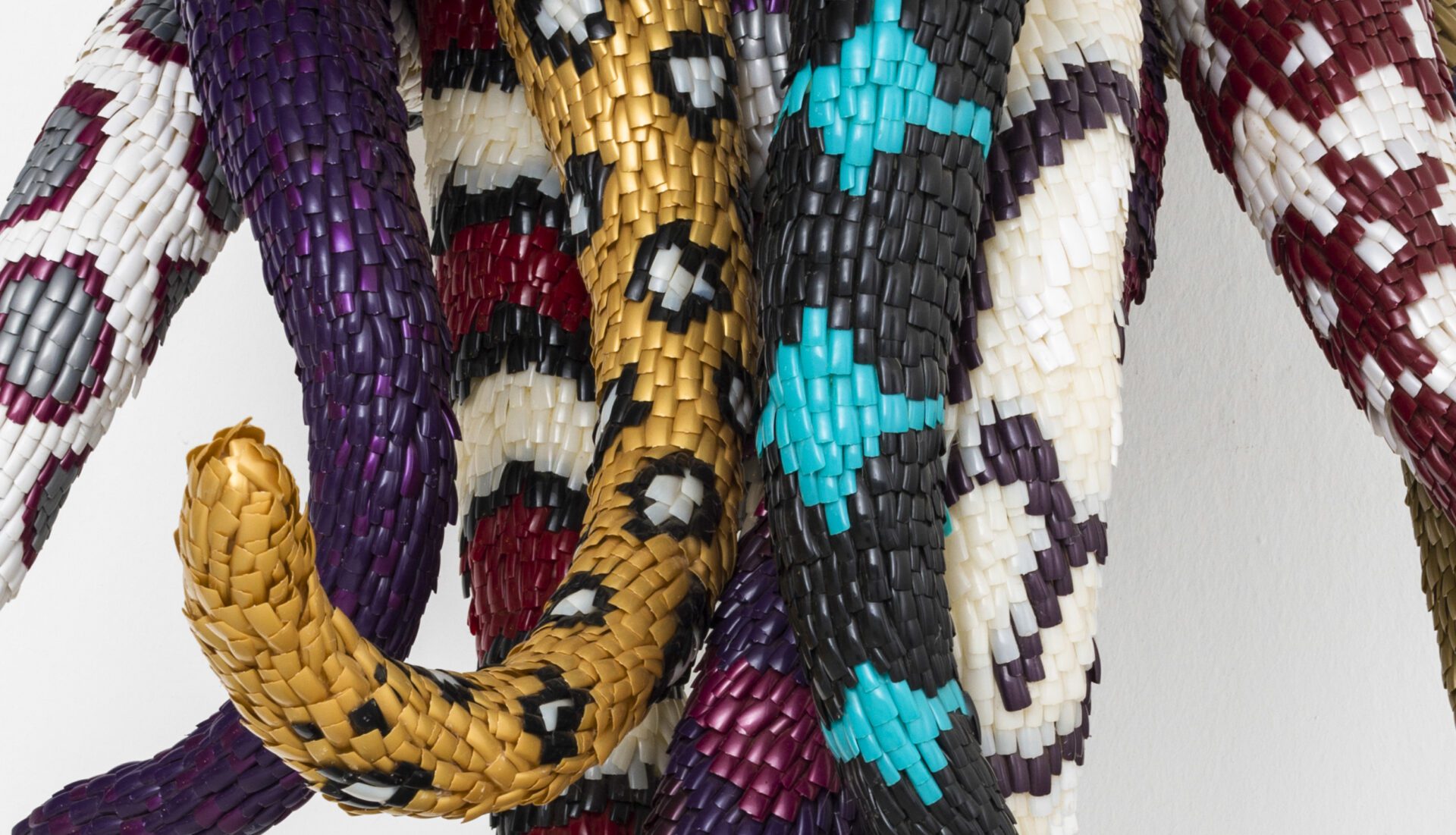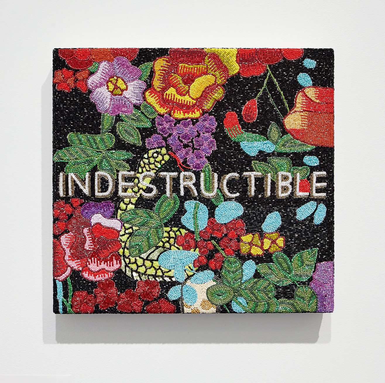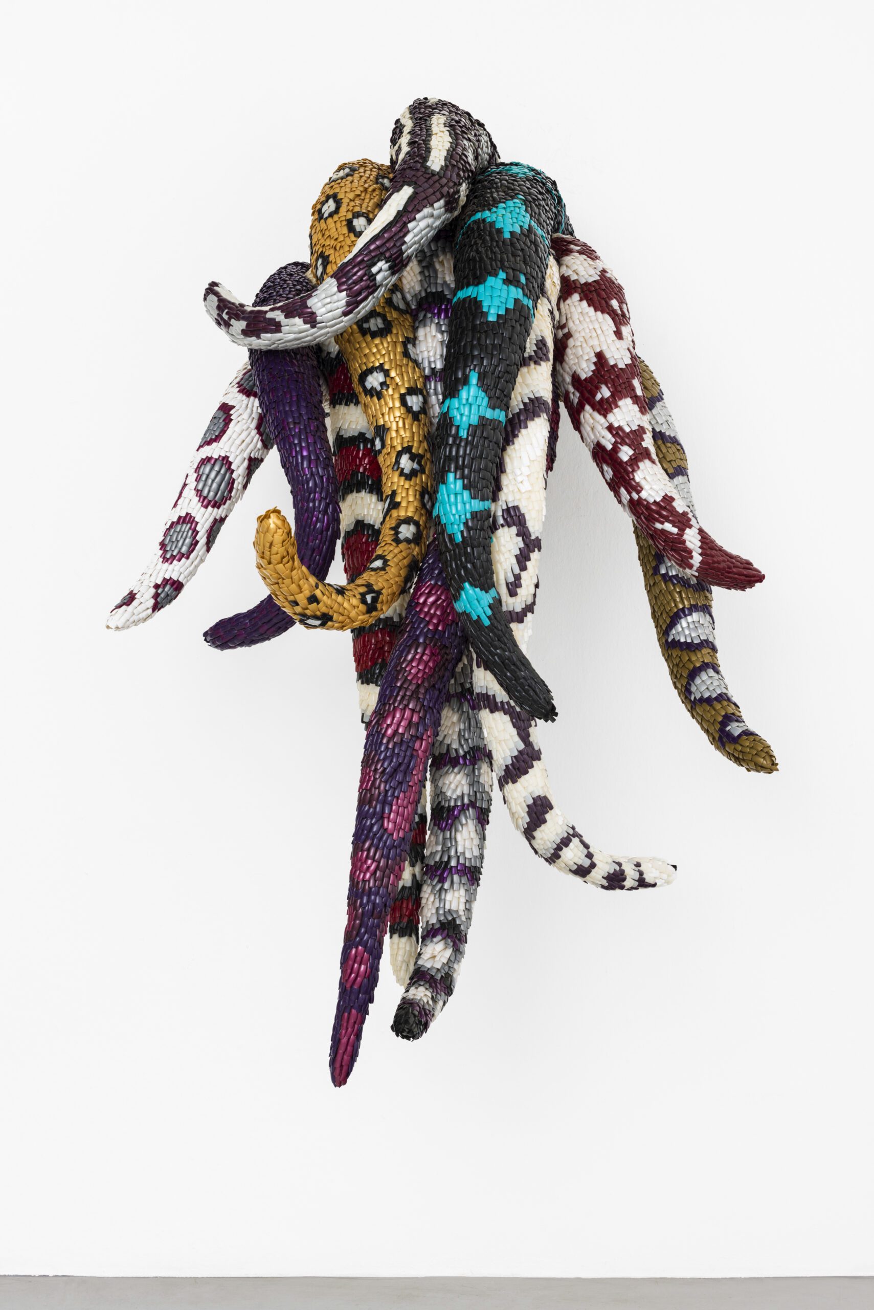 In this exhibit, the fourth for the Nashville property, themes of ancient mythology, nature, power and self abound. It explores the affirmation of self while incorporating materials and techniques broadly categorized as female. To reflect the ongoing influence of feminist art of the 1970s, the art incorporates everyday materials like bedsheets, as well as craft-based practices such as sewing, weaving, embroidery and appliqué.