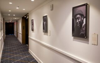 McCloud curated a portrait series for the hotel, Nashvillians of Merit, with commissioned portraits of Nashvillians in every room. In the two-story Trade Room a collaborative installation was installed, with many pieces making one amazing local face. The famous Nashvillian there? McCloud’s own mom, a representation of the support behind all creative people.