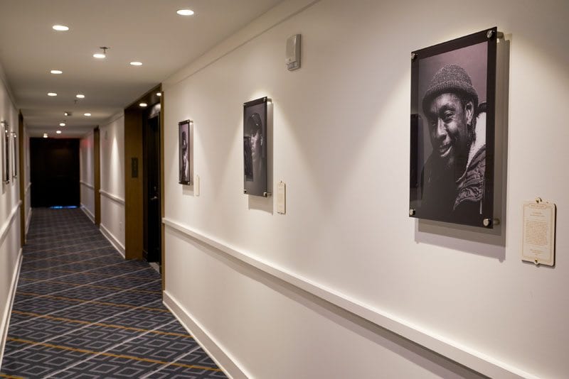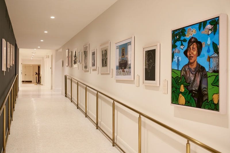 McCloud curated a portrait series for the hotel, Nashvillians of Merit, with commissioned portraits of Nashvillians in every room. In the two-story Trade Room a collaborative installation was installed, with many pieces making one amazing local face. The famous Nashvillian there? McCloud’s own mom, a representation of the support behind all creative people.