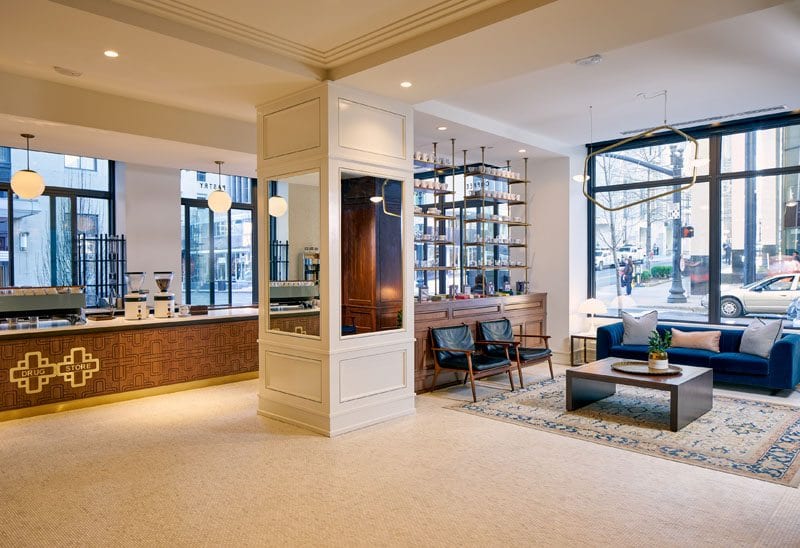 That is what made Andy Mumma such a natural choice to conceptualize and manage the coffee setup, Drug Store. Creator of Barista Parlor, Mumma had worked with Dryden on the Golden Sound location of Mumma’s growing coffee-shop empire.